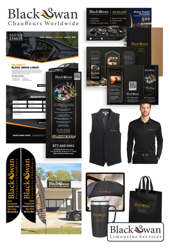 Client Name: Black Swan Limousine Services Client Since: 2018 Industry: Luxury Transportation Project Type: Full Brand Identity + Ongoing Creative Support Scope: Branding, Print, Promo, Signage, Event Collateral, Web