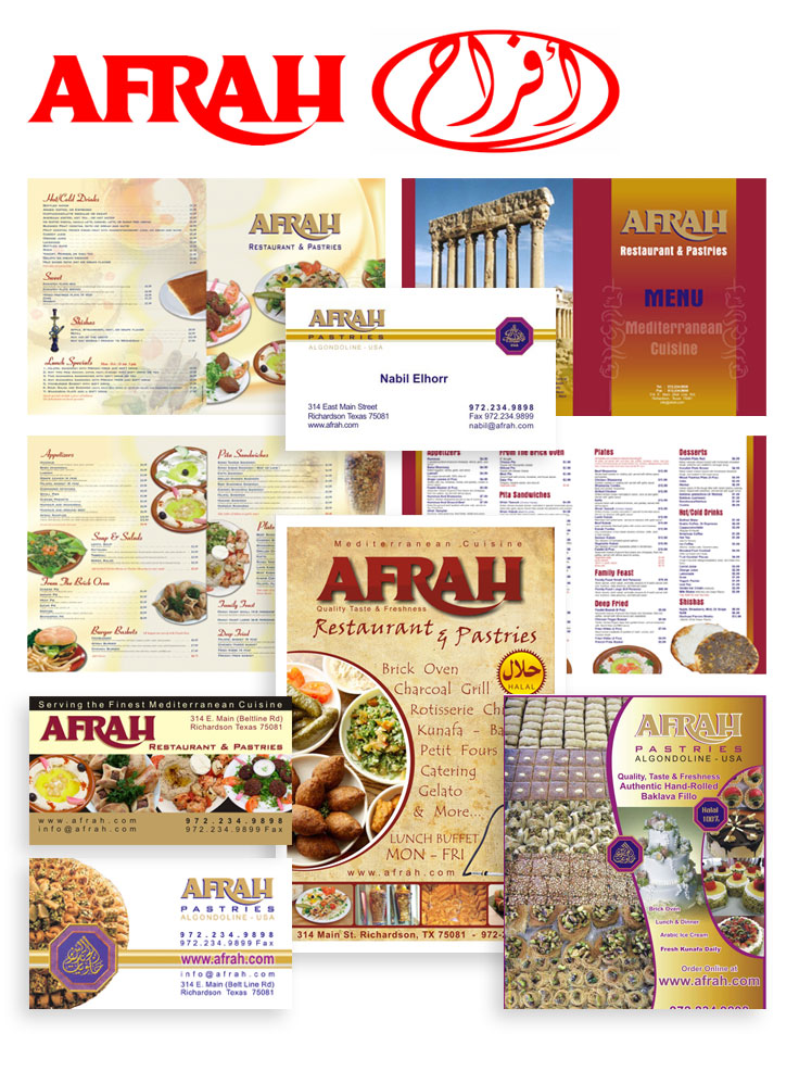 Today, Afrah Mediterranean Cuisine is a household name in Dallas — known for its vibrant flavors, family atmosphere, and enduring brand. RGWOW is proud to have played a foundational role in building this legacy — proving how strategic design, cultural insight, and consistent branding can fuel long-term success.